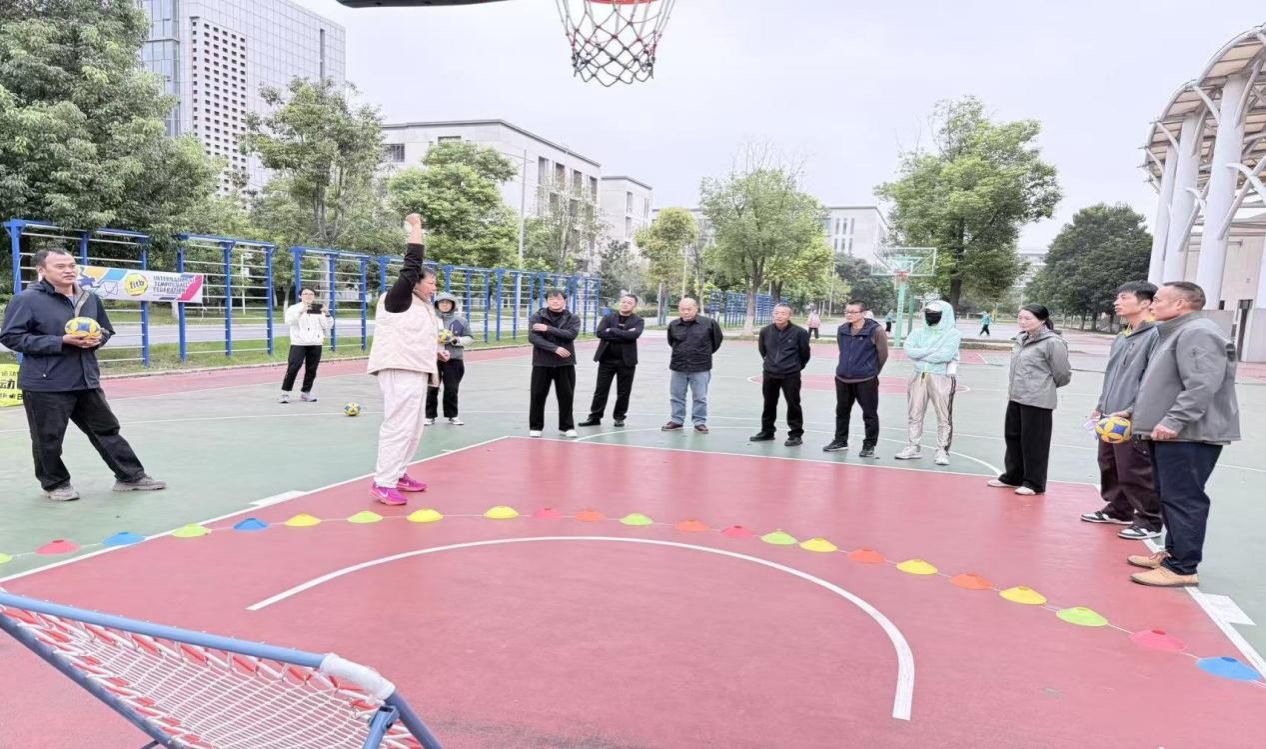 襄阳四中高中部体育学科室主任杨亚飞教师对曾海的到来表示热烈欢迎。杨亚飞主任介绍了襄阳四中高中部体育学科发展历程、专业建设、学科发展等情况。曾海介绍了巧固球的发展历史、竞赛组织等。双方就巧固球的发展、体育特色项目的开展作了深入探讨。接着,曾海教师到篮球场为襄阳四中高中部体育学科教师分享了巧固球的特色、发展历史、竞赛规则,以及巧固球初级入门操作传接球、前后排防守、射网技巧等技术,襄阳四中高中部体育学科教师积极参加巧固球实操演示。同时也准备积极组建襄阳四中教职工巧固球队。