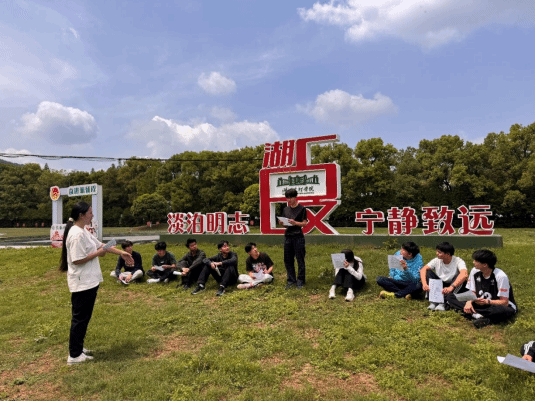 以景为媒,以书会友。春日的淡泊湖畔,绿草如茵,微风轻拂。同学们围坐在一起,在轻松自由而又不失庄重的氛围中,拉开了读书会序幕。活动精心设计了领读、分享和互动等多个环节,以“围读”的亲近感与“茶话”的轻松感交织相融,让阅读回归生活本真,成为一次思想的行走、一场精神的对话。